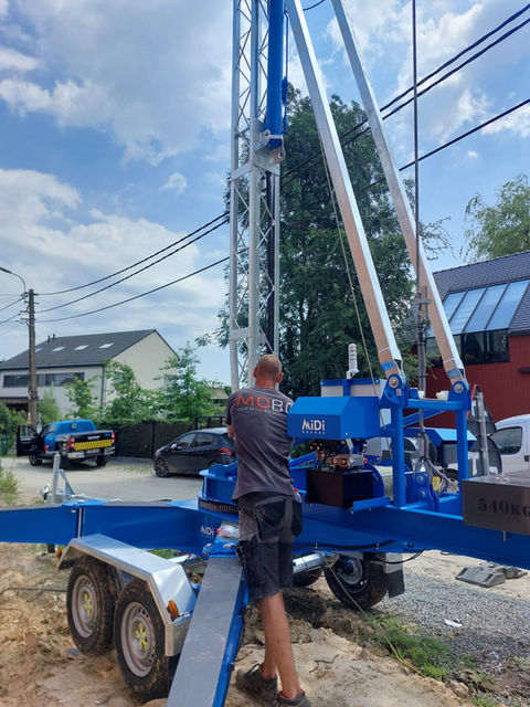 MiDi cranes snelmontage kranen zijn kranen met een eigen gewicht minder 3,5 ton. Deze machines laten zich volledig hydraulisch monteren in minder dan 30 minuten. Het perfecte gereedschap voor de dakwerker en aannemer van renovatiewerken. Te transporteren met rijbewijs BE.
